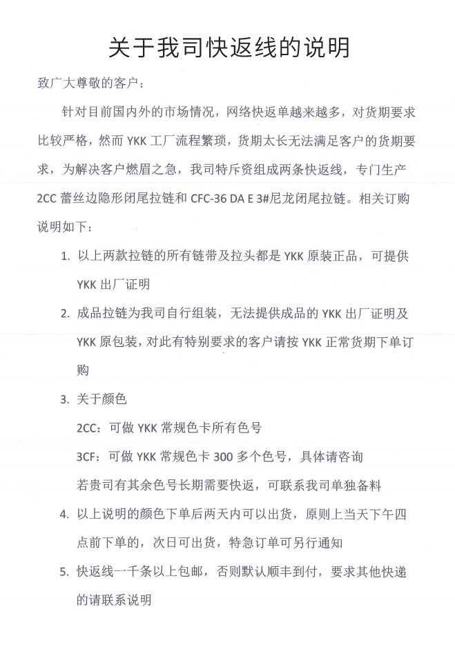 YKK拉鏈訂貨流程?